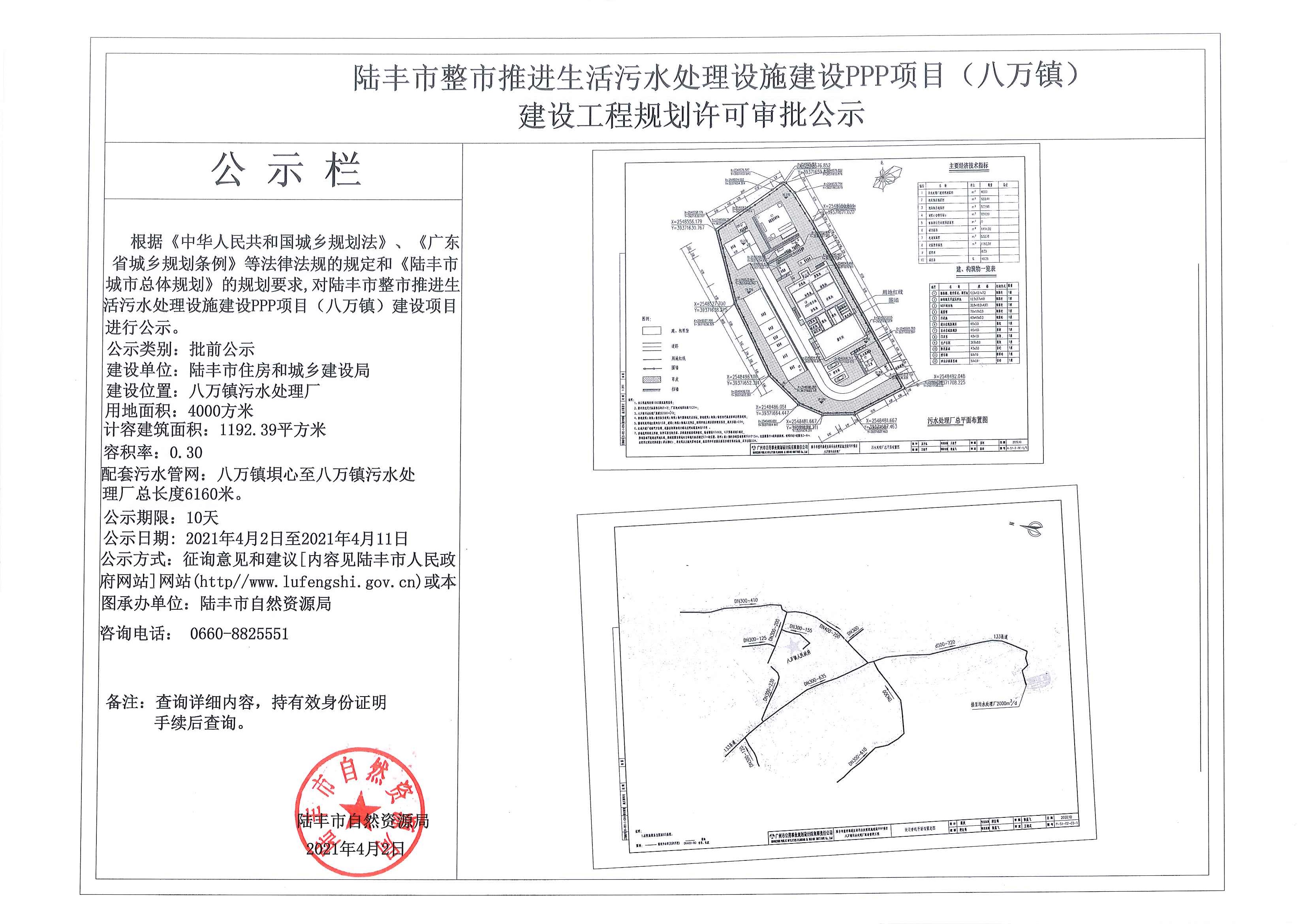 陸豐市整市推進(jìn)生活污水處理設(shè)施建設(shè)PPP項(xiàng)目(八萬(wàn)鎮(zhèn))建設(shè)工作規(guī)劃許可審批公示