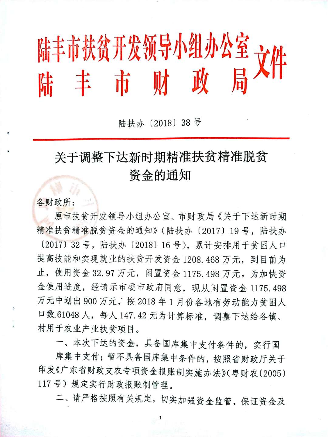 關(guān)于調(diào)整下達(dá)新時(shí)期精準(zhǔn)扶貧精準(zhǔn)脫貧資金的通知
