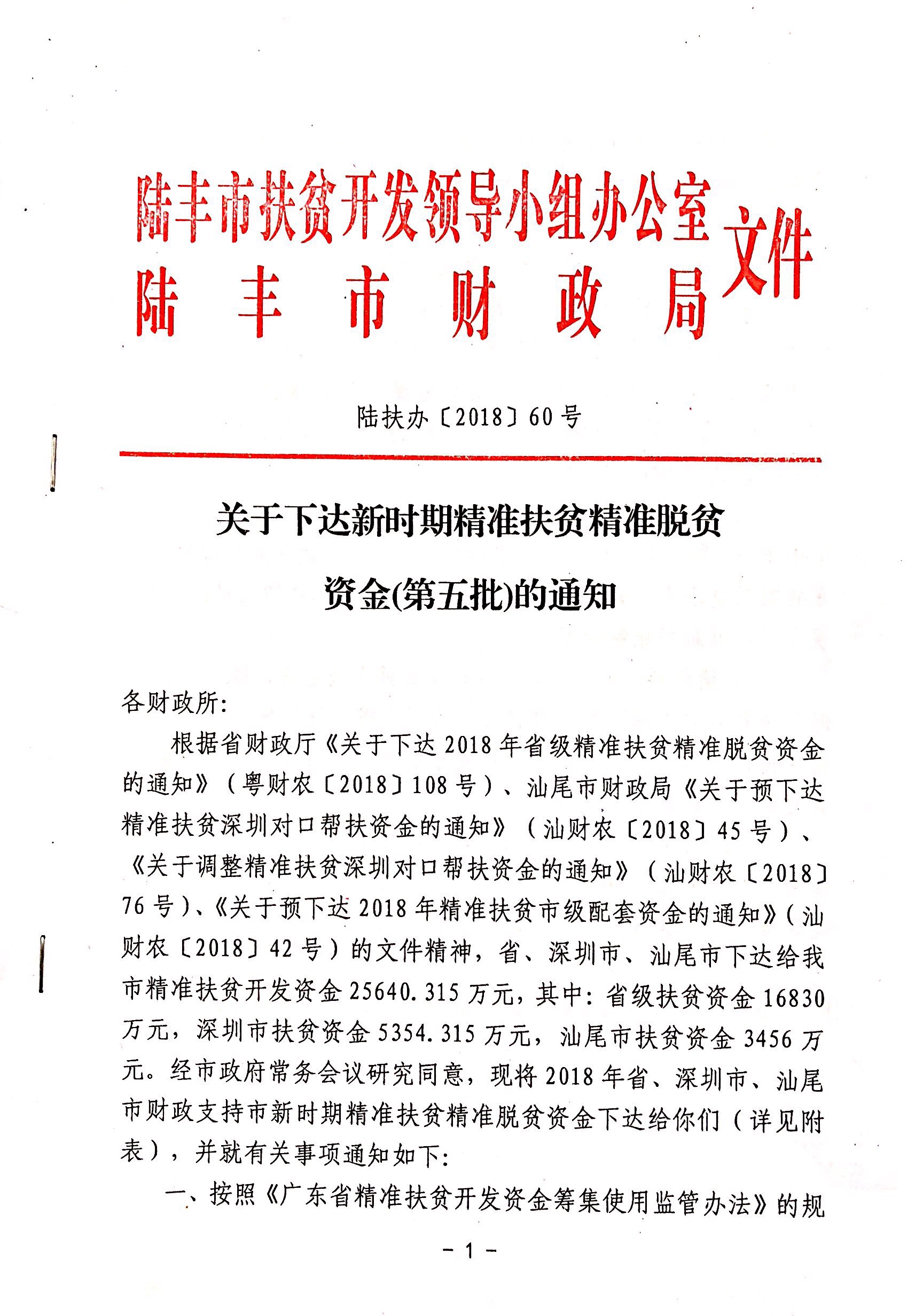關(guān)于下達(dá)新時(shí)期精準(zhǔn)扶貧精準(zhǔn)脫貧資金(第五批)的通知