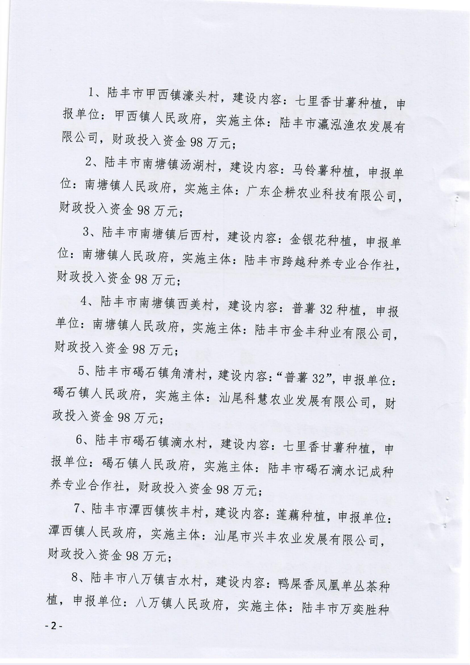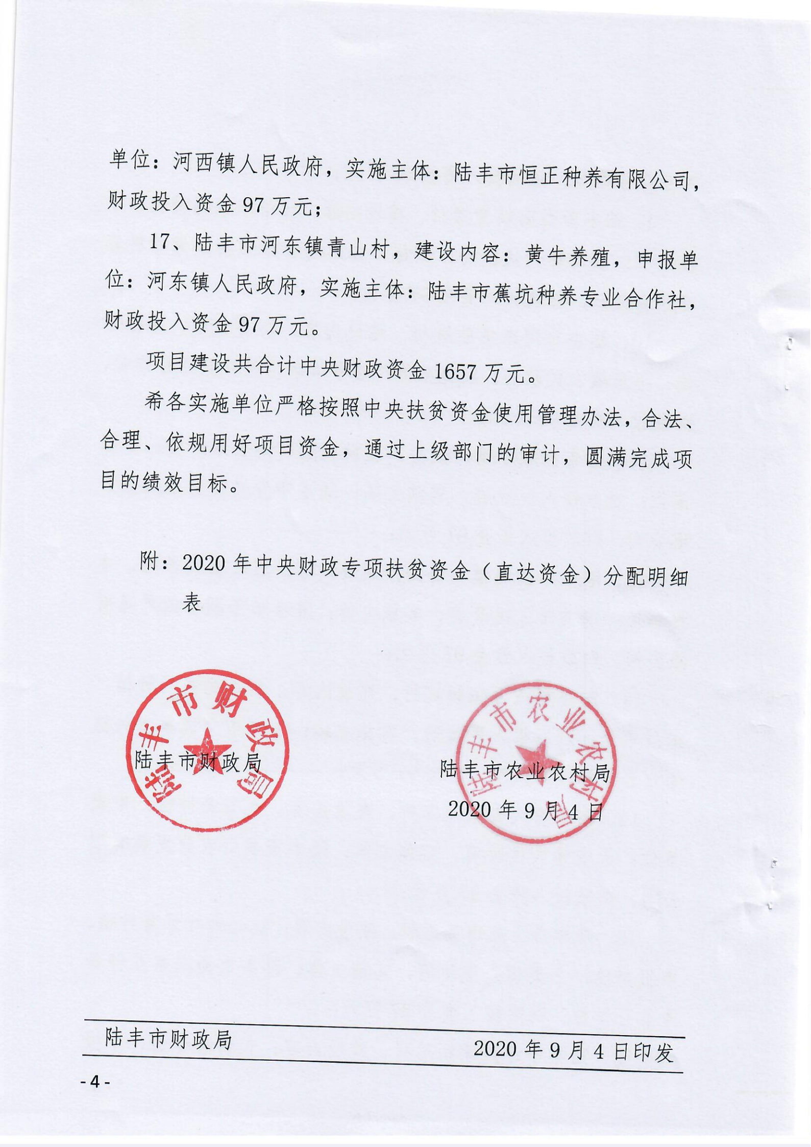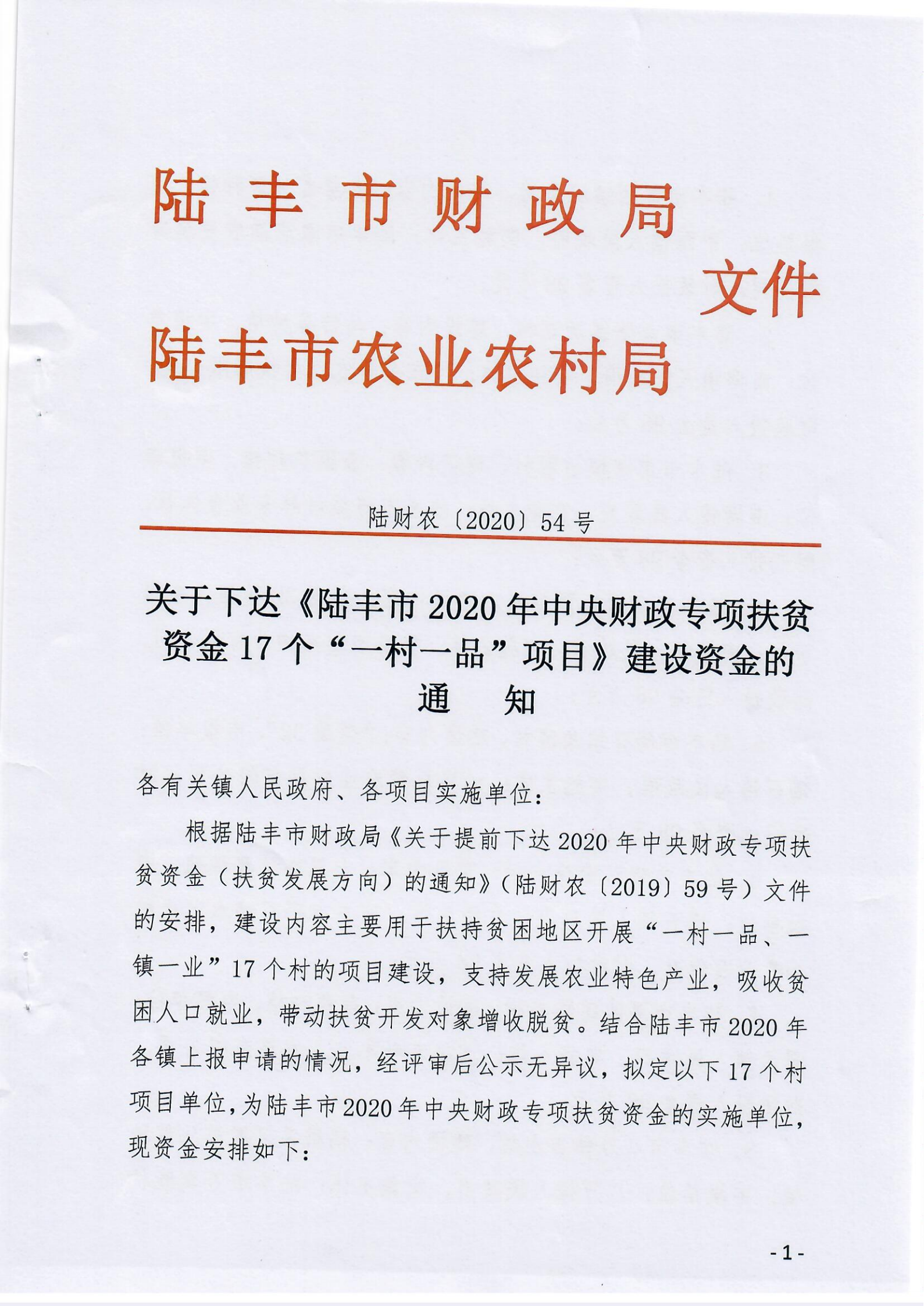 關(guān)于下達《陸豐市2020年中央財政專項扶貧資金17個“一村一品”項目》建設(shè)資金的通知