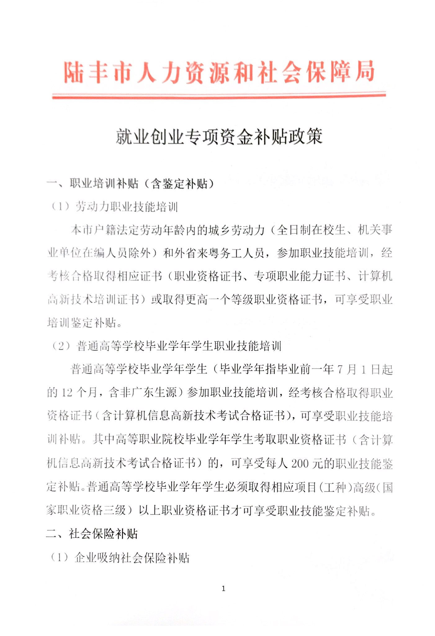 就業(yè)創(chuàng)業(yè)專項(xiàng)資金補(bǔ)貼政策