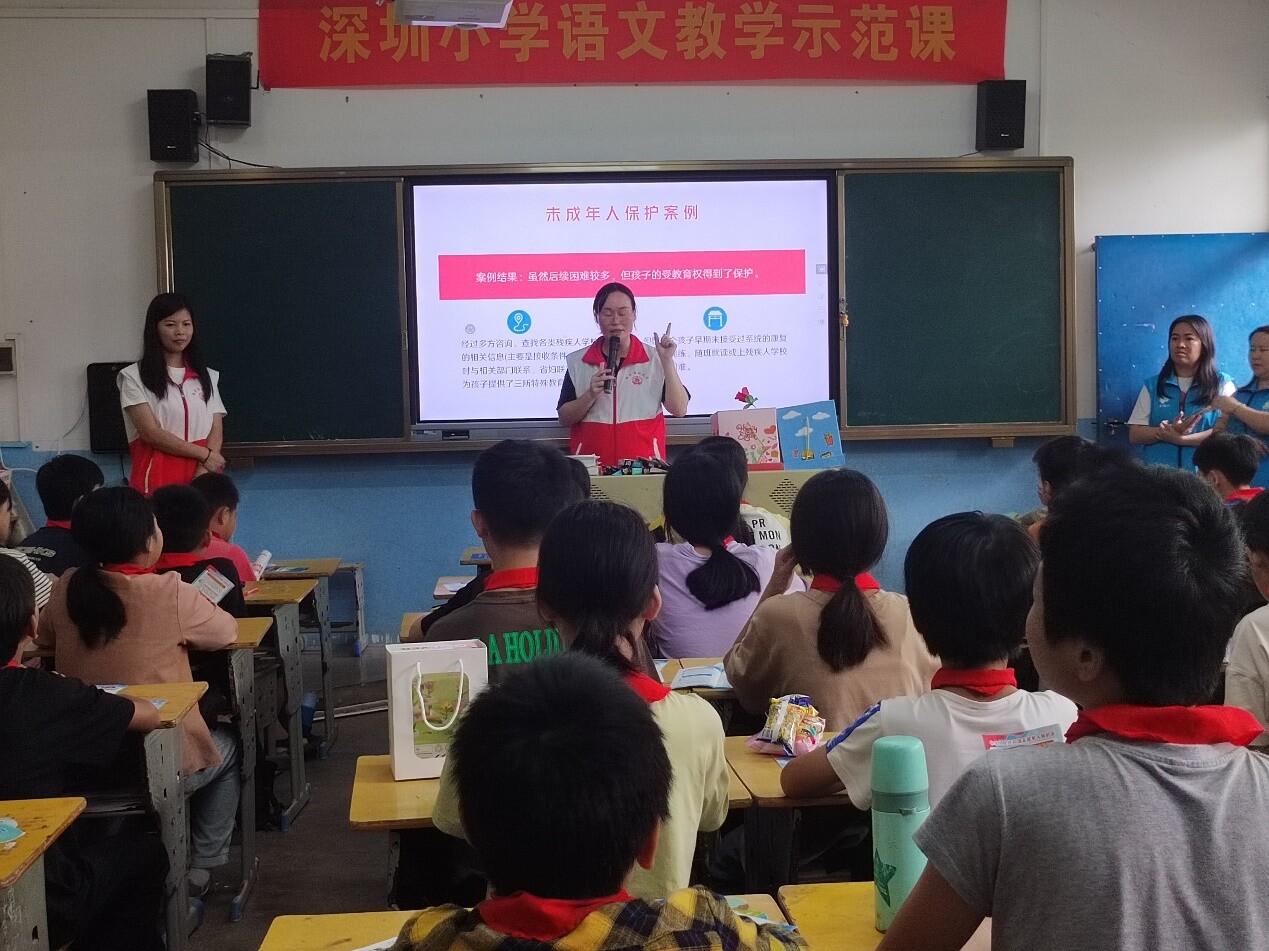 活動(dòng)于上午九點(diǎn)半開始,我中心主講老師為同學(xué)們普及了傳統(tǒng)節(jié)日端午節(jié)的由來及習(xí)俗,通過《中華人民共和國未成年人保護(hù)法》宣傳手冊(cè),為同學(xué)們普及了未成年人保護(hù)法里面有哪六大保護(hù),再結(jié)合實(shí)際案例,分析各保護(hù)為孩子們帶來哪些權(quán)益,大家又應(yīng)該怎樣維權(quán),通過什么部門維權(quán)。