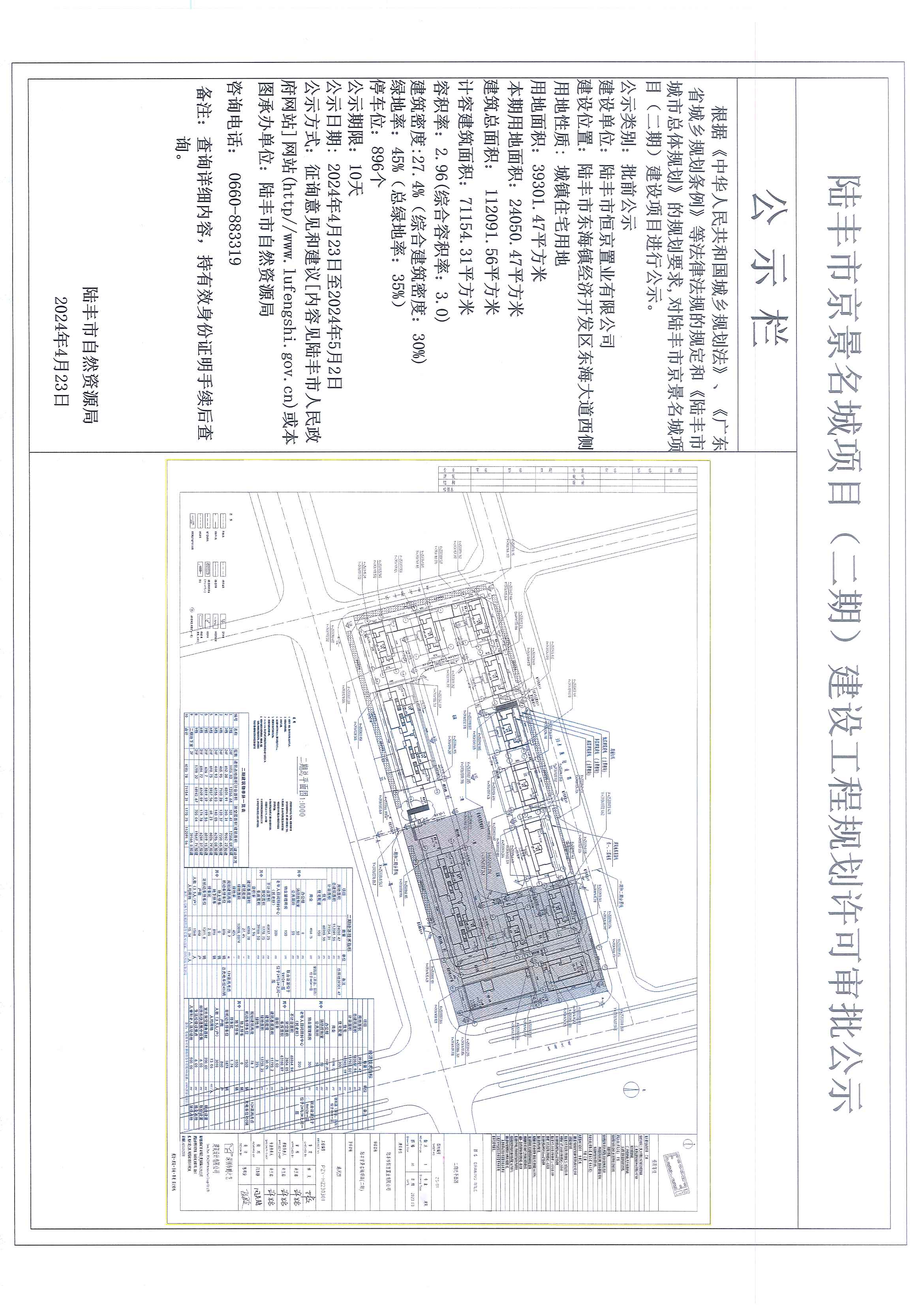 陸豐市京景名城項目(二期)建設(shè)工程規(guī)劃許可審批公示