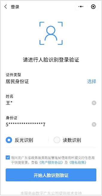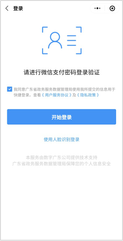 選擇人臉登錄,點(diǎn)擊同意事項(xiàng),并點(diǎn)擊“開(kāi)始登錄”。點(diǎn)擊下一步進(jìn)行人臉識(shí)別,完成登錄。