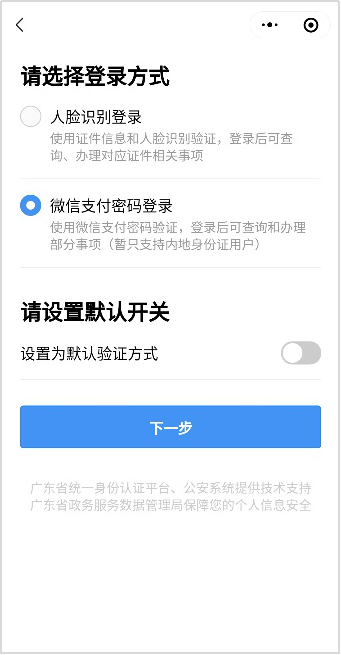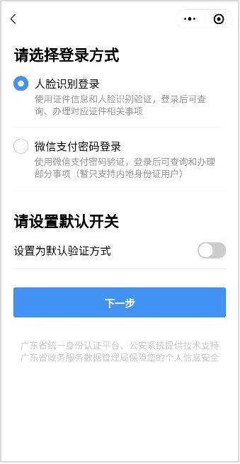 進(jìn)入服務(wù)界面后,如未進(jìn)行實(shí)名認(rèn)證,可根據(jù)界面相應(yīng)提示實(shí)名認(rèn)證,當(dāng)前可選“微信支付密碼認(rèn)證”、“人臉識(shí)別認(rèn)證”兩個(gè)認(rèn)證方式。