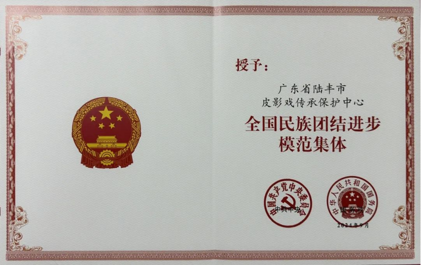 9月27日,在北京舉行的全國民族團(tuán)結(jié)進(jìn)步表彰大會上,市皮影戲傳承保護(hù)中心被授予“全國民族團(tuán)結(jié)進(jìn)步模范集體”榮譽(yù)稱號,也是汕尾市唯一獲此殊榮的集體。這份重磅的榮譽(yù),讓市皮影戲傳承保護(hù)中心全體工作人員感到無比榮耀、更顯擔(dān)當(dāng)。