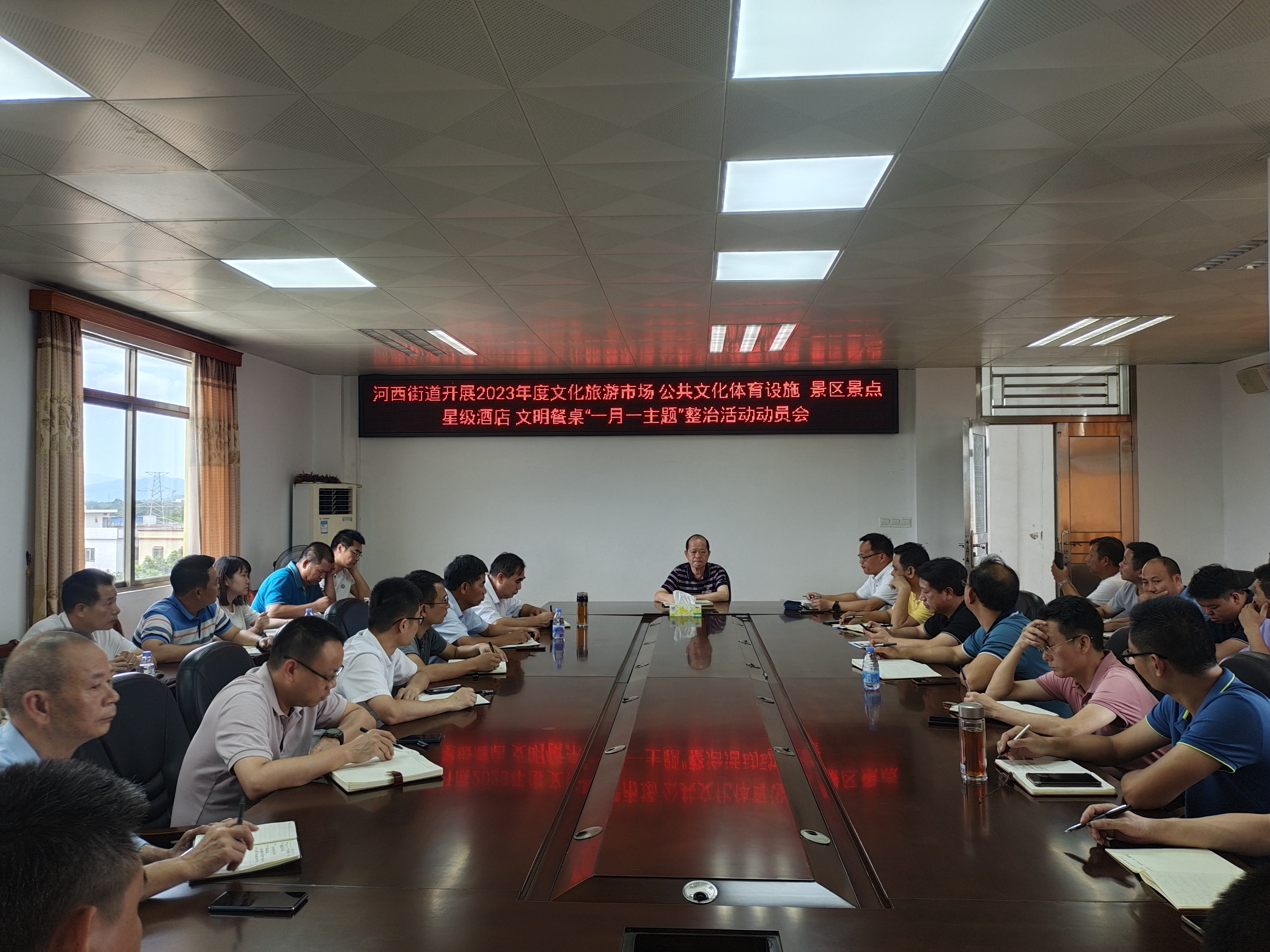 為貫徹落實(shí)市委市政府關(guān)于精神文明建設(shè)的工作部署,進(jìn)一步樹立良好的社會風(fēng)尚,營造文明向善的旅游氛圍,提升文明創(chuàng)建工作整體水平,確?!耙辉乱恢黝}”整治工作取得實(shí)效。9月4日,河西街道在辦事處五樓會議室召開了2023年度文化旅游市場 公共文化體育設(shè)施 景區(qū)景點(diǎn) 星級酒店 文明餐桌“一月一主題”整治活動動員會,由街道領(lǐng)導(dǎo)班子、駐村領(lǐng)導(dǎo)、各村(社區(qū))書記等40余人參加。