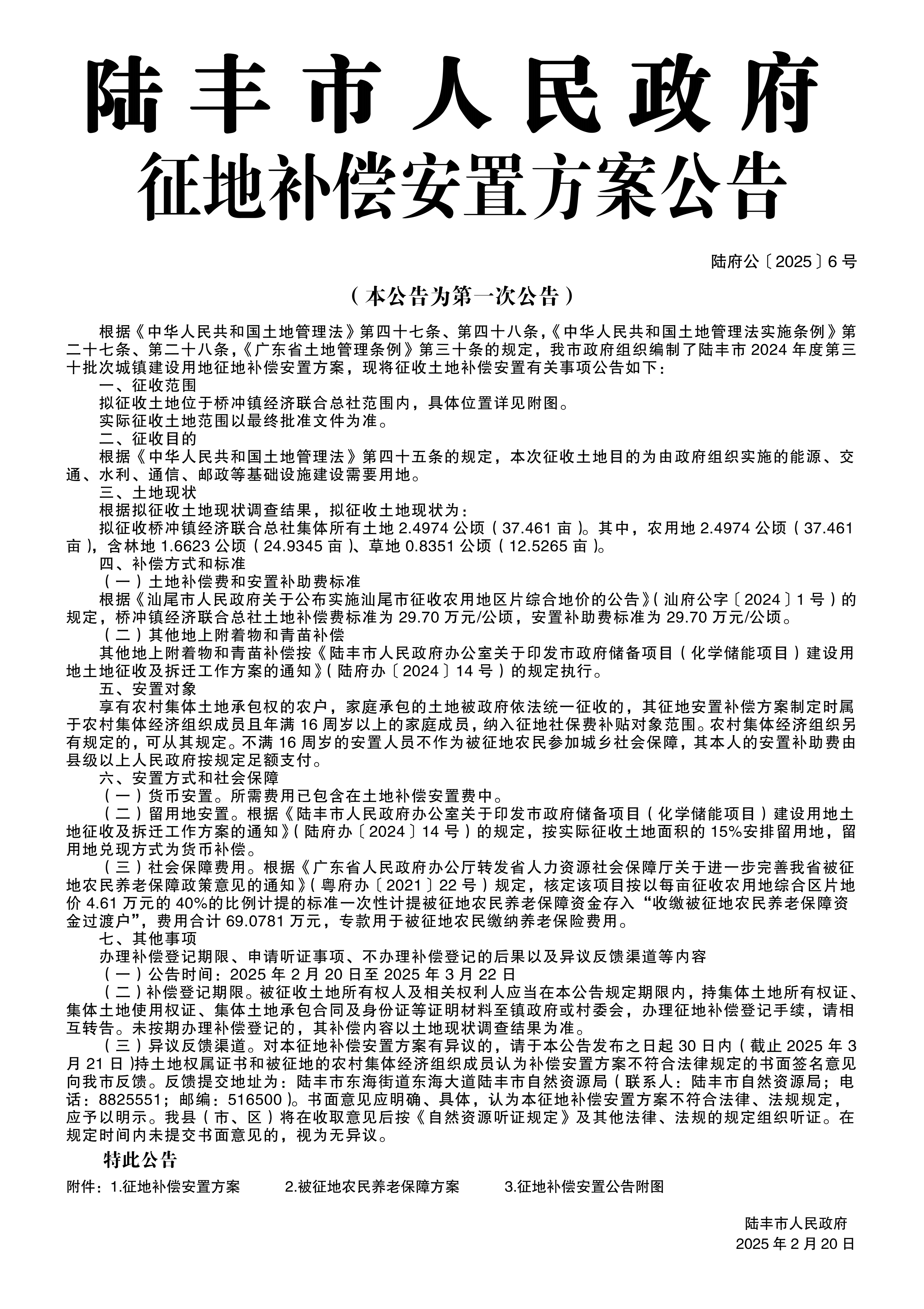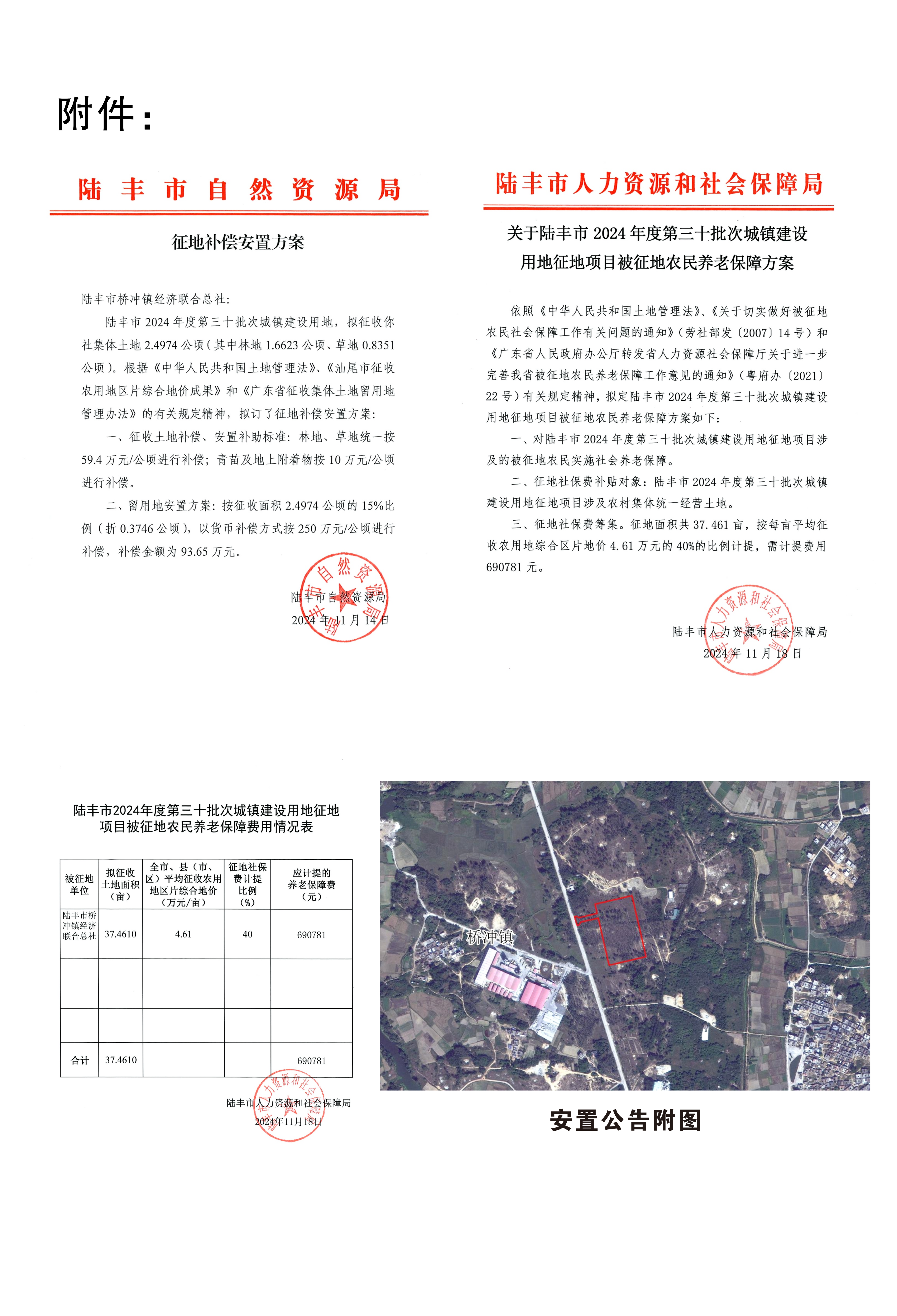 陸豐市人民政府土地補償安置方案公告(陸府公〔2025〕6號)24年三十批
