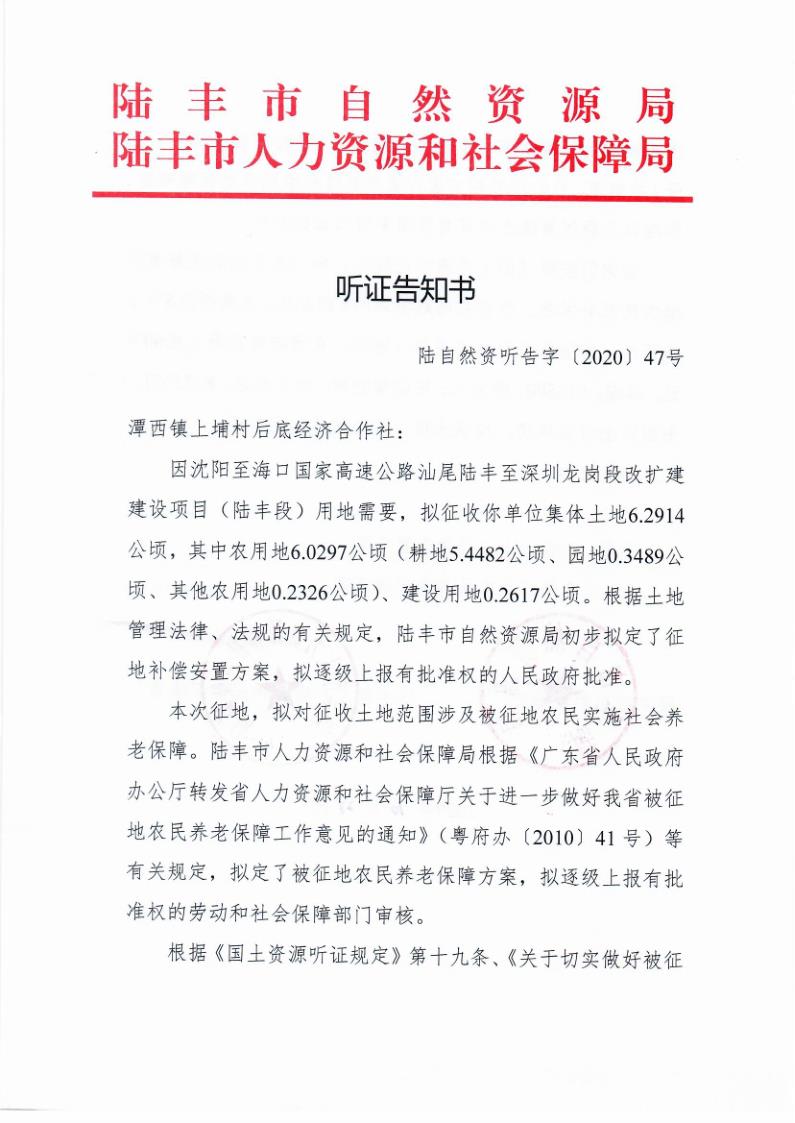 聽證告知書(陸自然資聽告字[2020]47號)