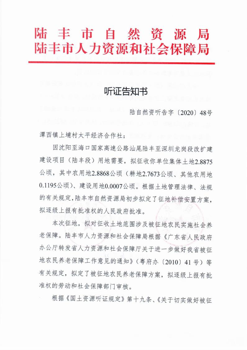 聽證告知書(陸自然資聽告字[2020]48號(hào))
