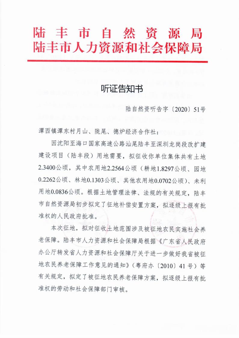 聽(tīng)證告知書(陸自然資聽(tīng)告字[2020]51號(hào))