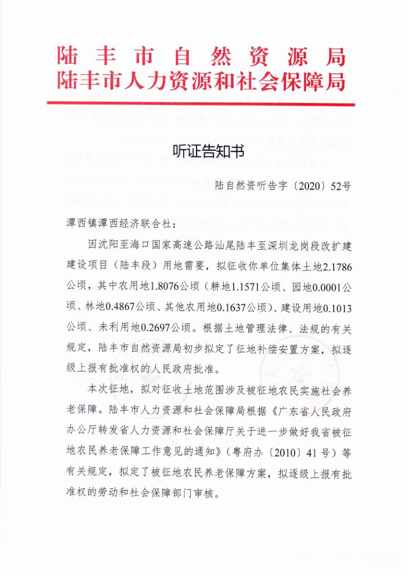 聽(tīng)證告知書(shū)(陸自然資聽(tīng)告字[2020]52號(hào))