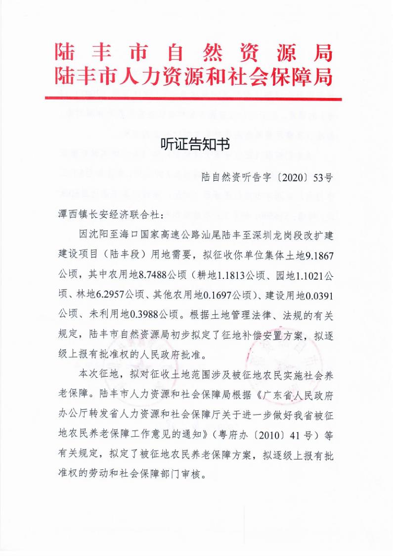 聽證告知書(陸自然資聽告字[2020]53號(hào))