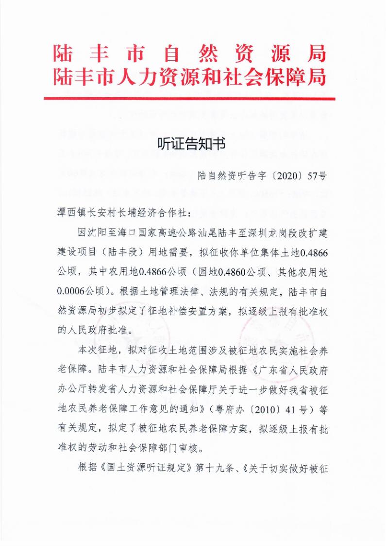 聽(tīng)證告知書(陸自然資聽(tīng)告字[2020]57號(hào))
