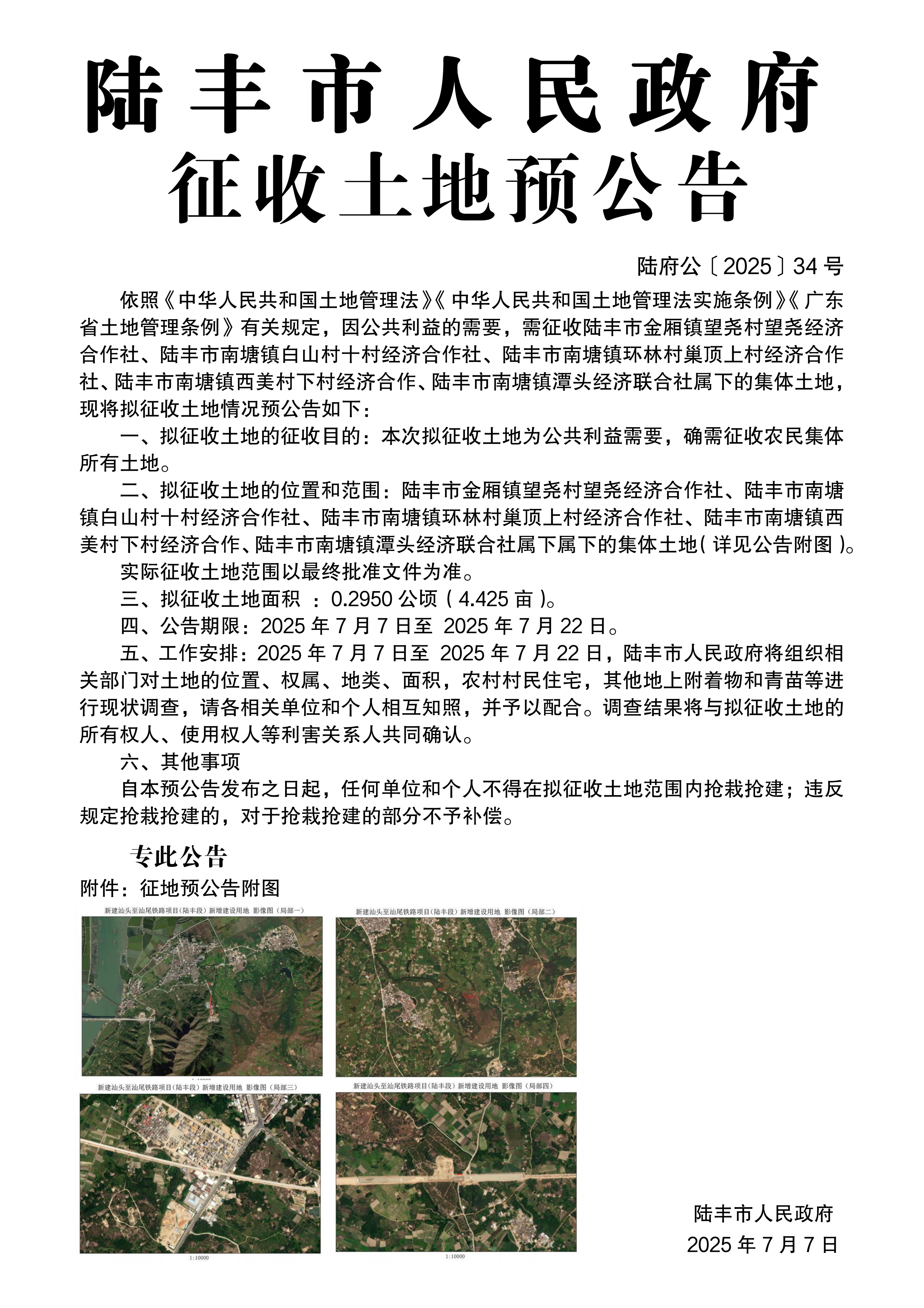 陸豐市人民政府關(guān)于征收土地預(yù)公告(陸府公〔2025〕34號)