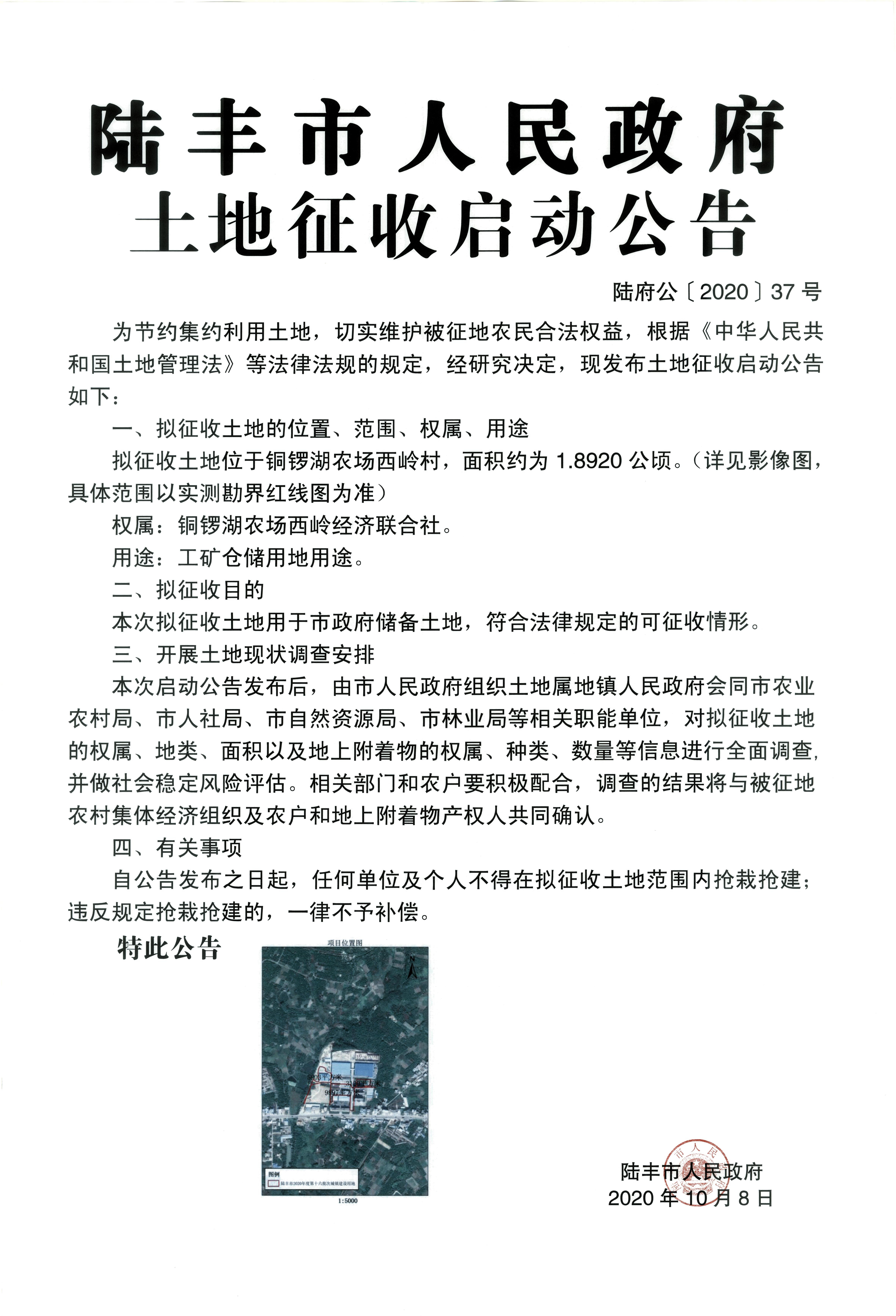 陸豐市人民政府土地征收啟動(dòng)公告-陸府公(2020)37號