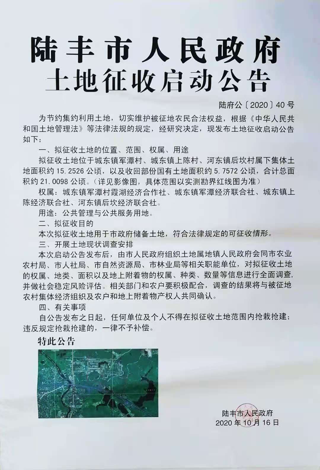 陸豐市人民政府土地征收啟動(dòng)公告-陸府公[2020]40號(hào)