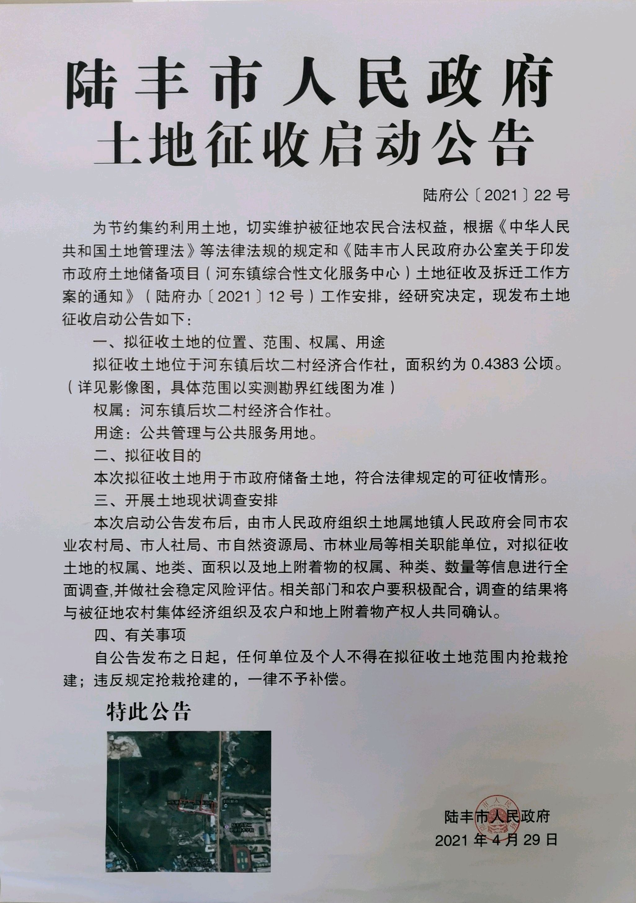 陸豐市人民政府土地征收啟動公告(陸府公[2021]22號)