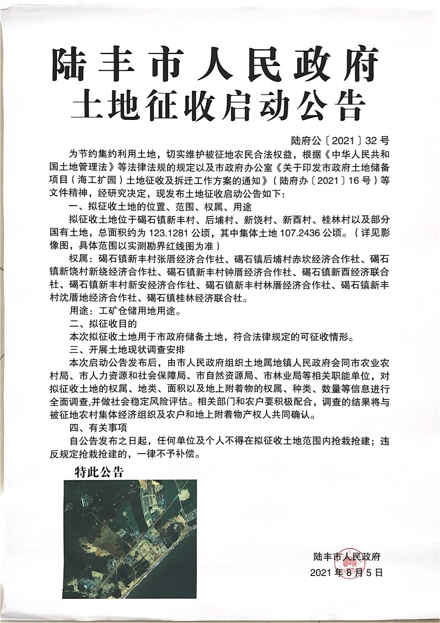 陸豐市人民政府土地征收啟動(dòng)公告(陸府公[2021]32號(hào))