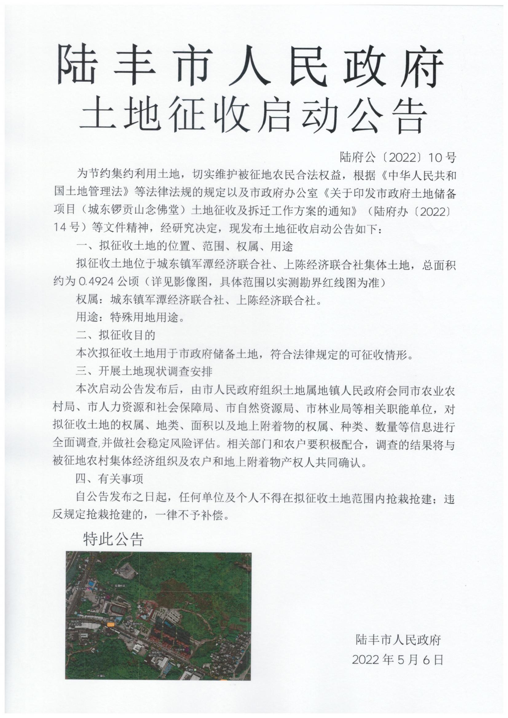 陸豐市人民政府土地征收啟動(dòng)公告(陸府公[2022]10號(hào))