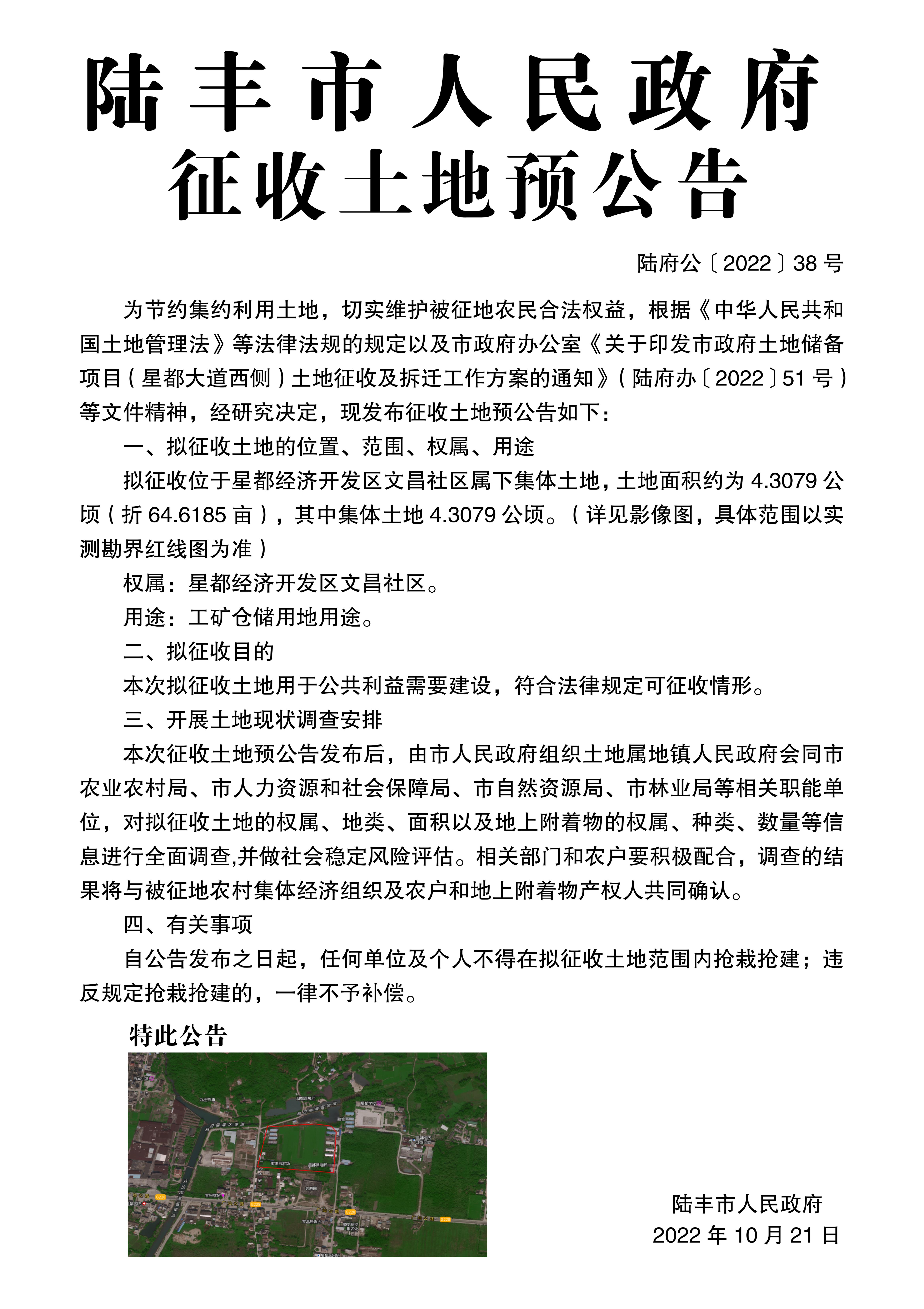 陸豐市人民政府征收土地預(yù)公告(陸府公[2022]38號)