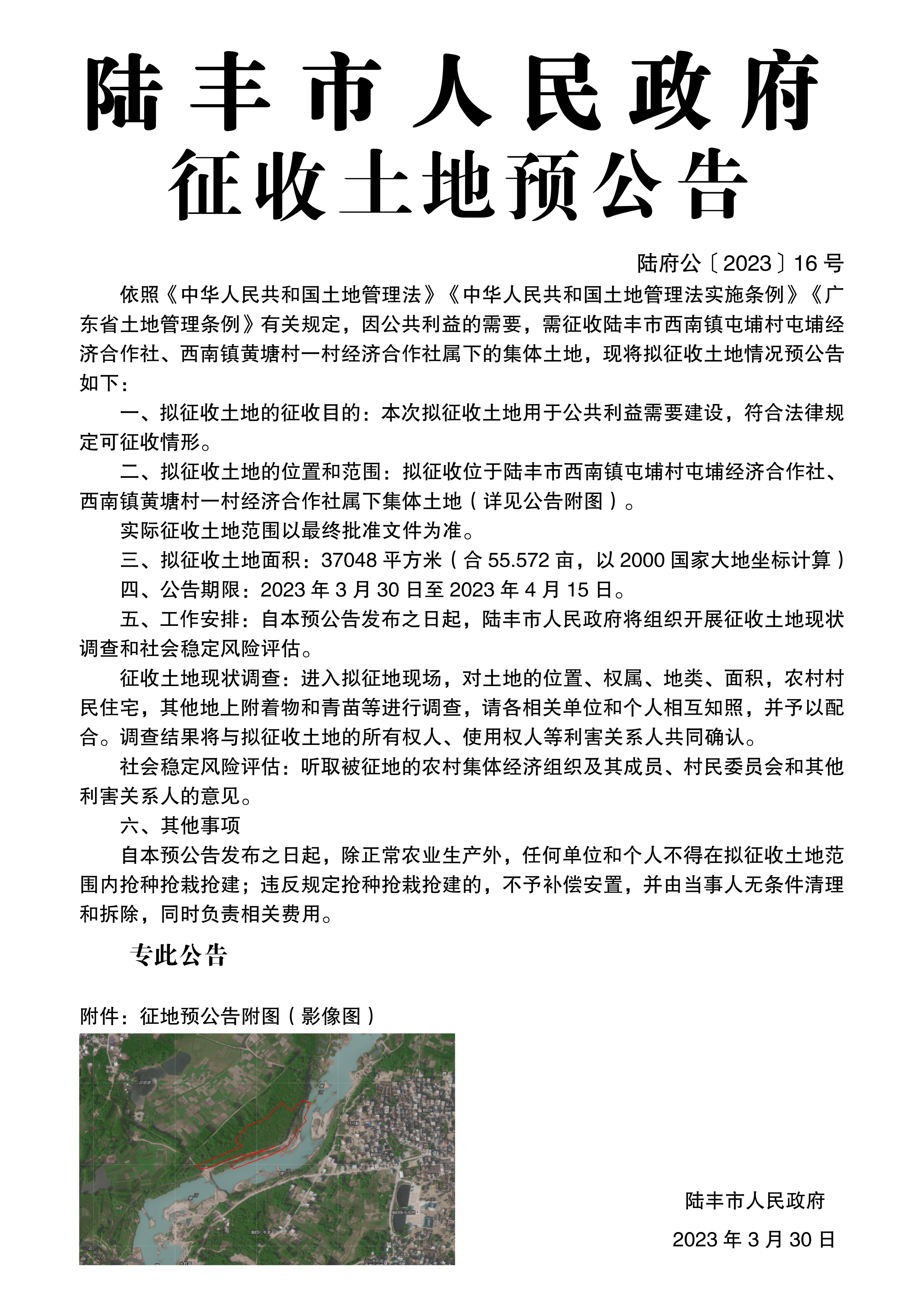 陸豐市人民政府征收土地預(yù)公告(陸府公〔2023〕16號(hào))