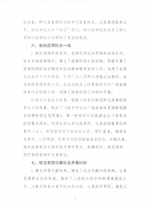 陸豐市文化廣電旅游體育局2020年法治政府建設年度報告
