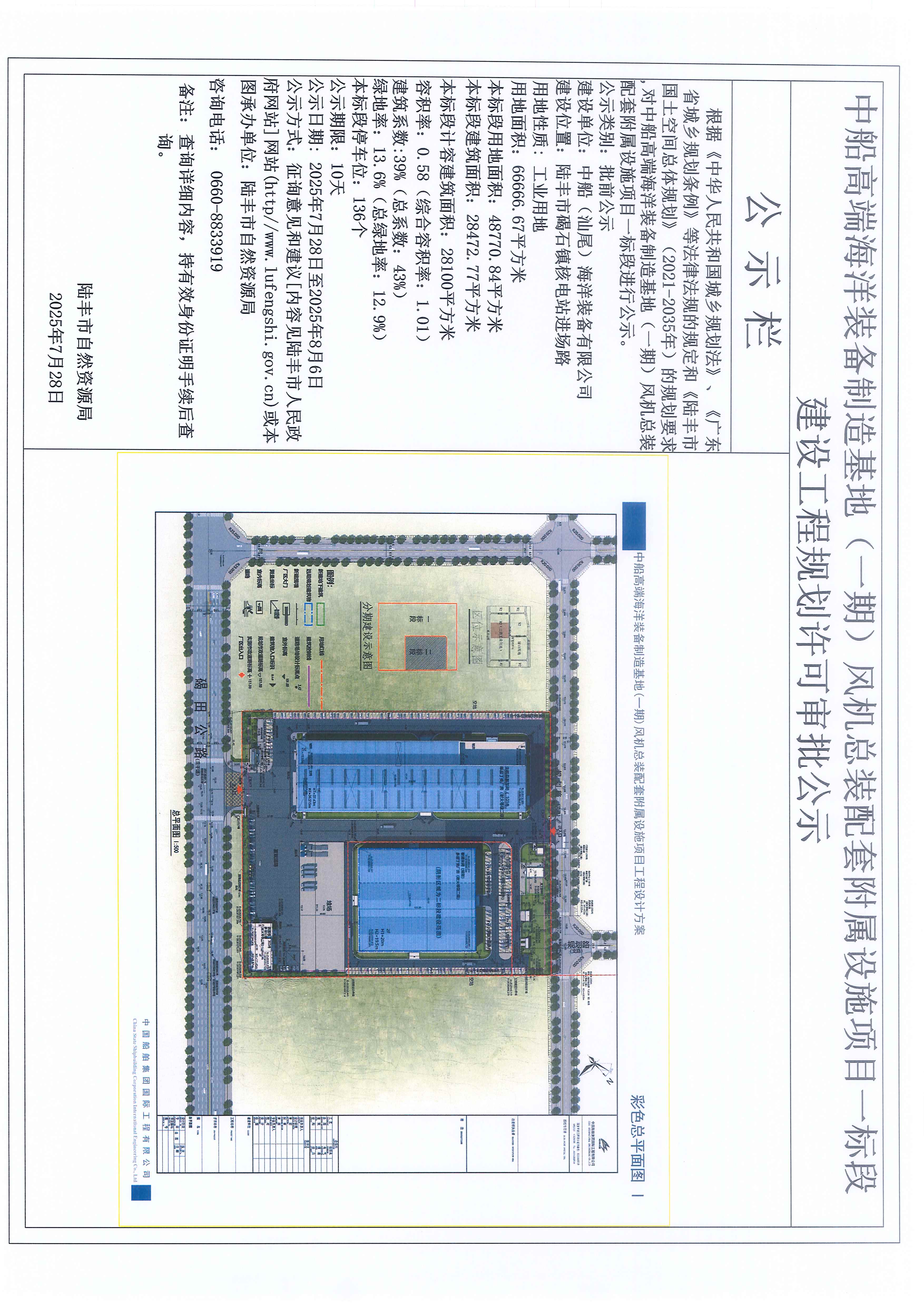 中船高端海洋裝備制造基地(一期)風(fēng)機(jī)總裝配套附屬設(shè)施項(xiàng)目一標(biāo)段建設(shè)工程規(guī)劃許可審批公示