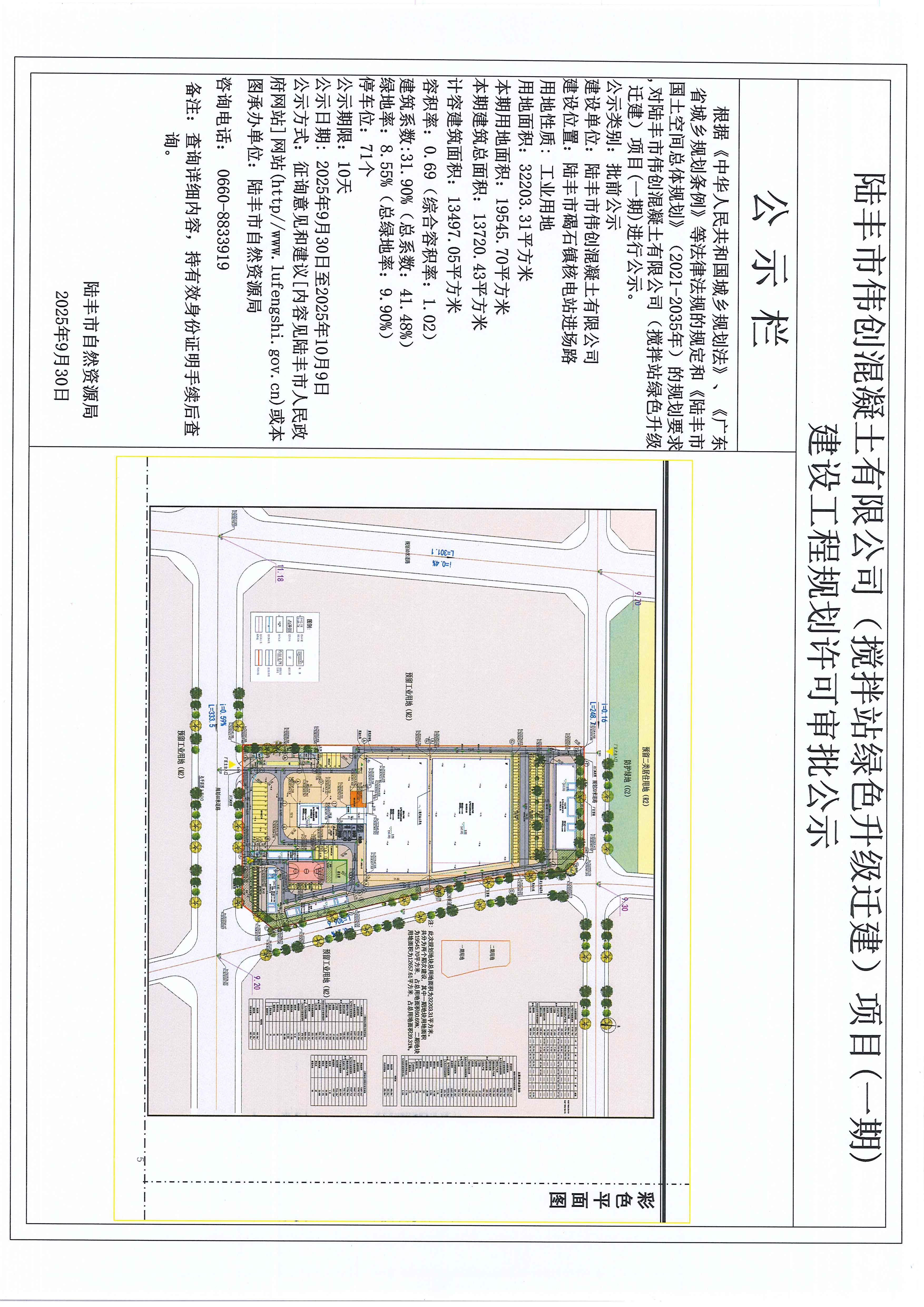 陸豐市偉創(chuàng)混凝土有限公司(攪拌站綠色升級(jí)遷建)項(xiàng)目(一期)建設(shè)工程規(guī)劃許可審批公示